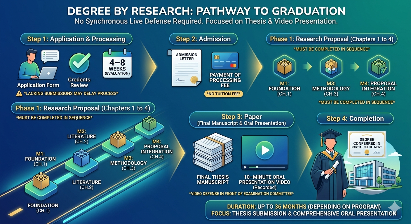 - Final Verification - After both the manuscript and video defense are approved, the university verifies the completion of all requirements before issuing the official transcript and degree.